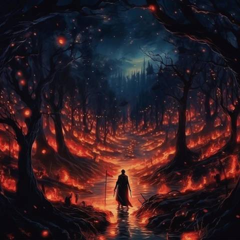 Неужели тут дракон? – испугался я, но быстро понял, что этого не может быть. Да и не было какого рева, взмаха крыльев. Я прислушался, призывая и волка соблюдать тишину. И вот оно, понятное и различимое, ставшее причиной нашего пробуждения. Это был треск, треск огня, точнее, горящих в огне веток. Так же на коже выступали капельки пота, ведь воздух был удивительно горячим. Было не жарко, было душно, не чем дышать.