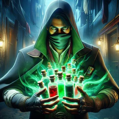 – Синее зелье дает буст к опыту, – мужик звякнул этими колбочками. – Желтое – удваивает все получаемые монеты. Красное – увеличивает регенерацию. Зеленое – броню. Фиолетовое поможет хрену встать даже после десятка девок. Тут уж смотря, что тебе нужно. Найдем все.