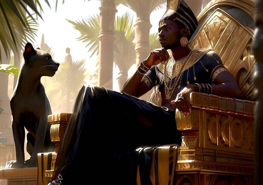 Стоит признать, что дворец был ещё роскошнее, чем мой из начала игры. Все коридоры, по которым меня вели, выглядели так, словно я на приёме у Ра. Просто капец: всё из золота, куча статуй Давида в роли фараона, будто я их по стране мало разрушал! Но за этими, сделанными из золота, я впервые разглядел его лицо. Нахальное, с большими губищами, странной причёской. Как он себе аватара выбирал? А, или здесь нельзя было вначале ничего менять? Тогда я очень удивился, ведь, судя по всему, наш царь был чернокожим. Вот такой Давид, с сюрпризом.