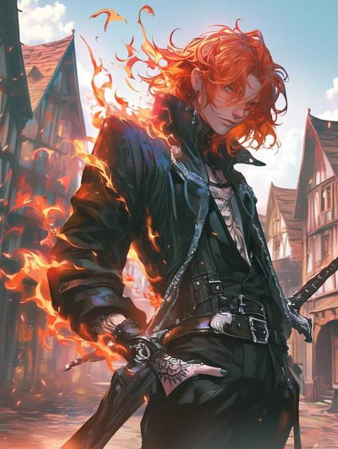 Но у меня просто не получилось. Когда я вырулил из-за поворота, то случайно налетел на игрока с самым фантастическим скином, который я только мог представить. С кожаной куртки по плечам ползли огненные дорожки, пока пламя лизало рыжие, чуть длинноватые, до плеч, волосы. Из-за этого толком не было понятно – пламя стекает у него с головы или наоборот? Да и следы его ног тоже оставляли за собой огненные следы, хотя кожаные черные ботинки не горели.