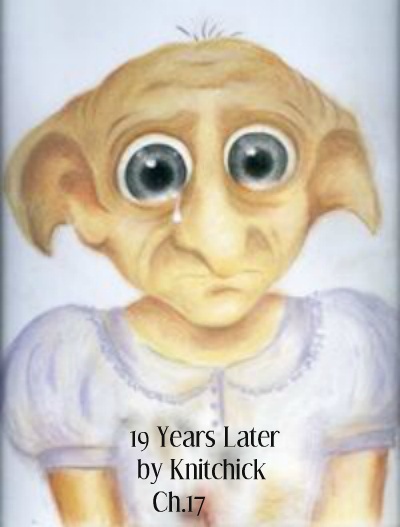 Гермиона оглядела комнату и обнаружила, что та, кого она искала, прячется под кухонным столом, дрожа и тихо плача. Она осторожно поставила эльфийку на ноги и подвела ее к Гарри, показывая, что именно она была той, благодаря которой Эйвери и Нотт вошли к ним.