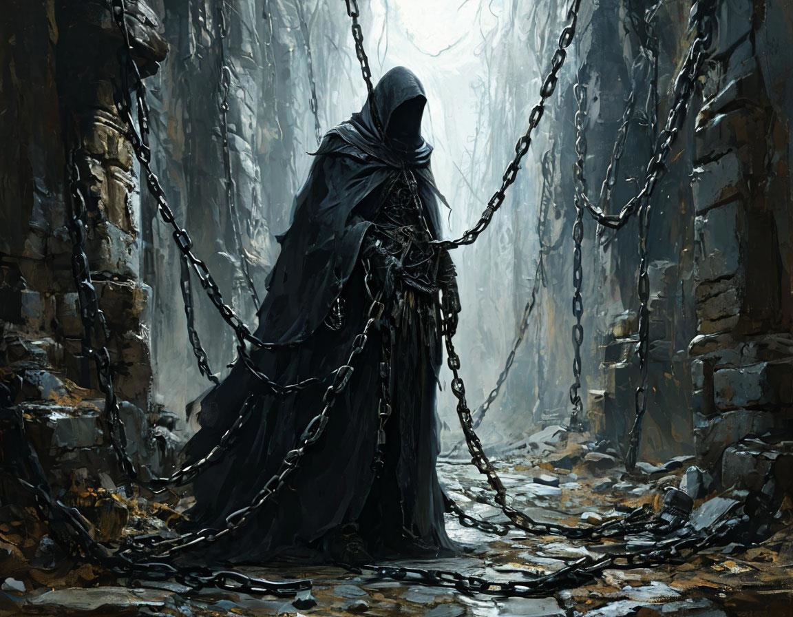 В тот же момент в его сторону устремляется поток цепей, словно состоящий из теней. Они, словно змеи, кинулись на директора, пытаясь его обвить.