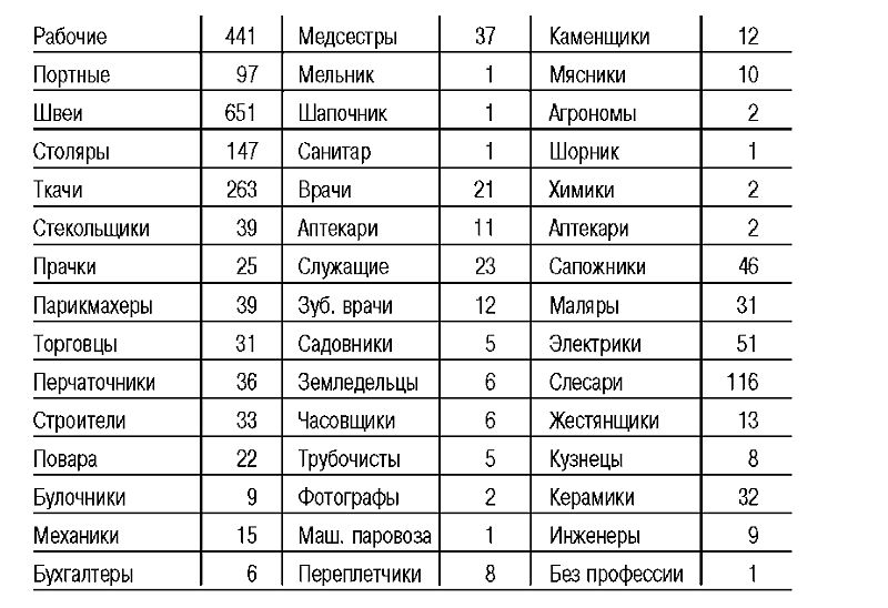 По профессии заключенные делятся следующим образом:
