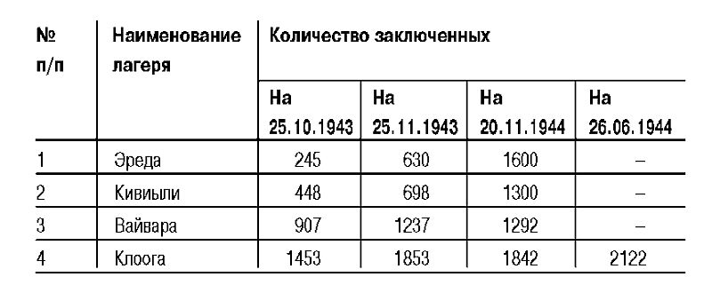 Всего за один день, 19 сентября 1944 г., в лагере Клоога, по заявлению уцелевших заключенных и местных жителей, было уничтожено до 3000 чел., из них:
