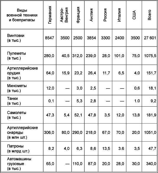 Таблица 1. Производство вооружений в годы Первой мировой войны