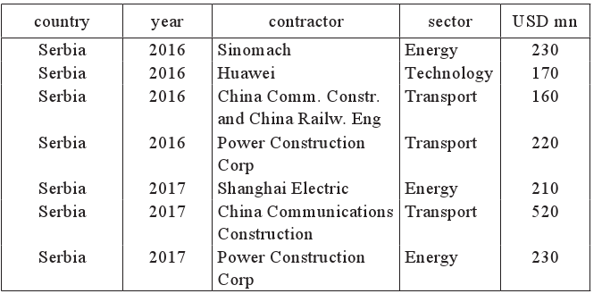 Of course, some authors are right to state that „these projects are not FDI, but mostly public investment contracts financed by Chinese banks; not all the projects might be realised.“ [Holzner, Schwarzhappel, 2018. P. 17]. So the data presented in Tables 2. and 3. can also be deceiving.