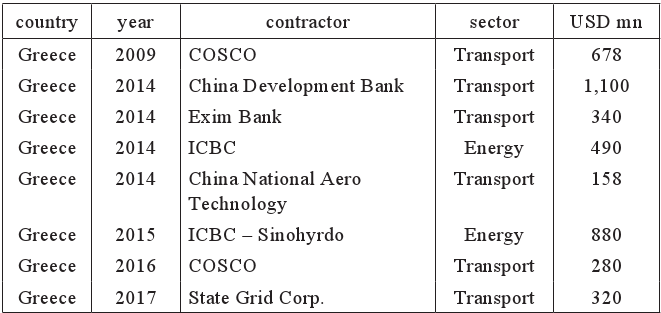 The number of major Chinese projects contracted in the Western Balkans (shown in Table 2) “since the outbreak of the global financial crisis is non-negligible. Overall, Chinese infrastructure projects make up about USD 9.1 billion (EUR 7.8 billion). Almost 90% of these, however, have been initiated only since 2013. The most important transport sector contractor is the predominantly state-owned China Communications Construction Company. In the energy sector, the state-owned China National Machinery Industry Corporation – known as Sinomach – is the leading contractor. Geographically, the prime target of Chinese construction contracts is Serbia.” [Holzner, Schwarzhappel, 2018. P. 17]. The increased interest of Chinese investors and banks in investing in Greece is also evident (shown in Table 3).