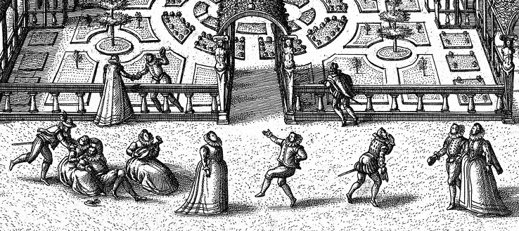 Наиболее ярко гендерный дисбаланс в отношении танцмейстеров к исполнительским компетенциям подопечных проявлялся в описании гальярдных вариаций. В своем первом учебнике на десять гальярдных вариаций, подходящих для кавалеров, Карозо приводит лишь одну последовательность для дам. Негри посвящает гальярде всю вторую часть своего трактата, и почти профессиональная сложность большинства из описанных им связок, подразумевающих туры и антраша в воздухе, даже не требует уточнения, кому именно адресован этот материал. Контраст между величественной статикой дамы и демонстративными па кавалера – характерная особенность танцевальных сцен в изобразительном искусстве конца XVI века (ил. 3).