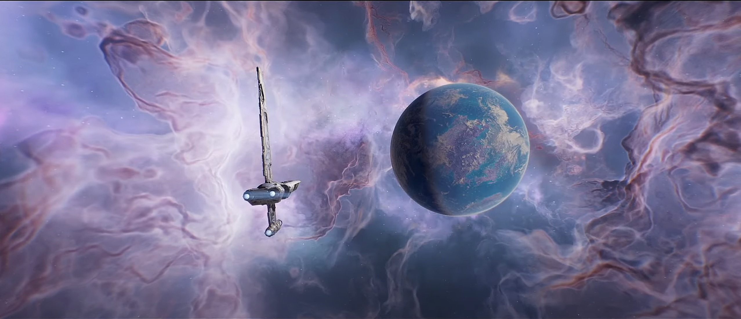 В окружении причудливых, розоватых облаков находился шарик голубоватый шарик планеты. Звезда была скрыта туманностью облаков, впрочем, это не мешало её свету пробиваться к планете.