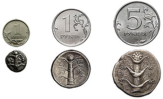 Тетрадрахма, как правило, немного меньше российской пятирублевой монеты, а дидрахма примерно соответствует рублю[5]5