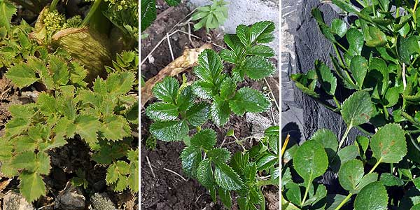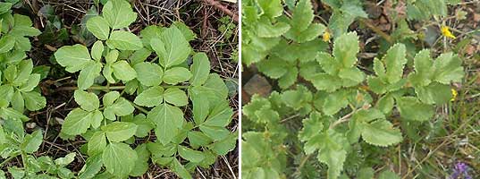 Рис. 33. Слева – прикорневой лист конского сельдерея Теофраста (Smyrnium olusatrum), справа – дягиля короткостебельного (Archangelica brevicaulis)[32]32