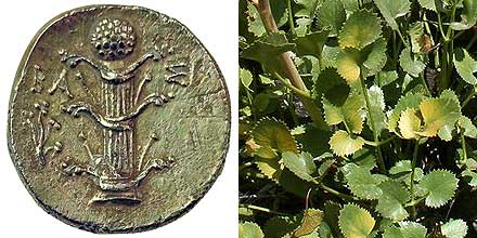 Однако помимо описания имеются многочисленные изображения листьев сильфия на монетах. Сразу можно отметить, что на изображениях конечные доли листьев сильфия не надрезаны, подобно листьям сельдерея, изображения которых встречаются на античных монетах того же периода, что и киренские (рис. 29).
