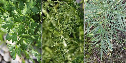 Рис. 35. Слева направо – лист: петрушки (Petroselinum crispum), ферулы тингитанской (Ferula tingitana), тапсии (Thapsia garganica)[34]34