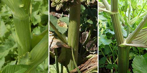 Среди зонтичных множество видов растений с ребристыми или бороздчатыми стеблями. Есть такие и среди дудников. Ребристые стебли встречаются чаще, но есть и бороздчатые. Так у дягиля низбегающего (Archangelica decurrens) стебель тонкоборозчатый.