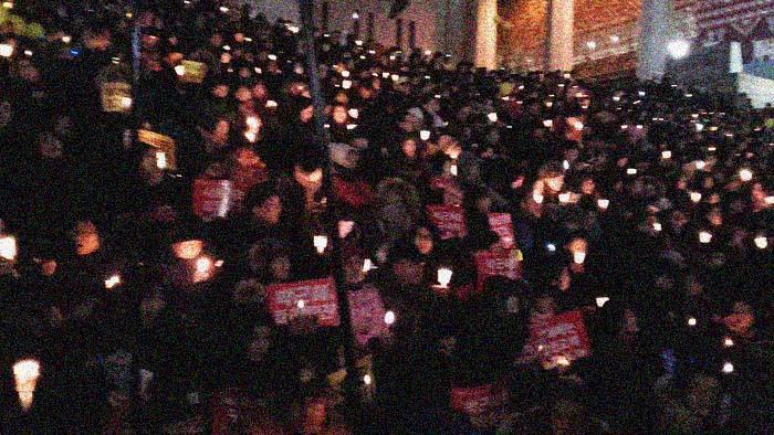 Этим бы и закончился митинг при свечах, но общее внимание привлекло новое зрелище, когда в серых небесах вспыхнули яркие огни.