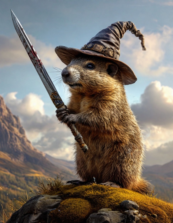 Пока профессор мучился в кресле и стонал, как от больного зуба, сурок несколько раз взмахнул мечом, попытался подпрыгнуть, но понял, что с его комплекцией прыжки противопоказаны. Шляпа все время сползала с мелких ушей, но Питер терпеливо её поправлял, ухмыляясь во все зубы. Гарри, подобравшись к столу, завороженно следил за «боевым байбаком», время от времени повторяя: «Офигеть». Понятное дело, в цирке ребенок не был, где ему увидеть такие художества.