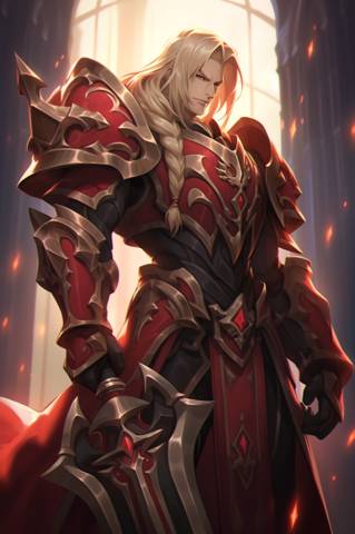 В небе появилась сияющая красная точка. Яркая. Точка стремительно увеличивалась в размерах. С высоты птичьего полета к ним приближался мужчина в красных доспехах. Он стоял верхом на огромном мече.