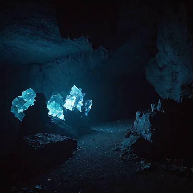 Зайдя в пещеру, мы оказались в практически в обычном подземелье, только в отличие от прошлого раза с кобальтами, в этот раз окрестности были освещены мерцающими кристаллическими образованиями, которые располагались вдоль стен. Это было лучше абсолютного мрака, благодаря чему можно было разглядеть десяток метров впереди.