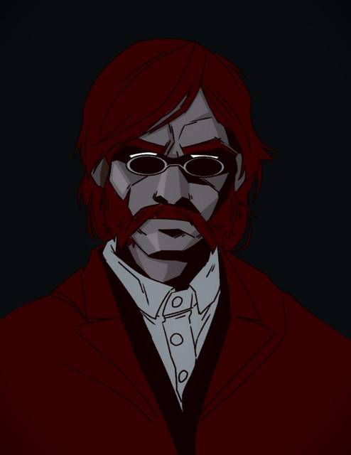 Внутрь зашёл мужчина лет 40, на нём было одето пальто, сам он на голове носил очки, на голове у него была шляпа, а лицо украшали бакенбарды, в кобуре был револьвер, весь его образ напоминал ковбоя.
