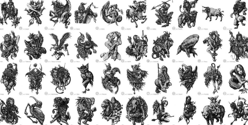 Через некоторое время мы прибыли в массивный куполообразный холл. Встроенный в потолок четырехцветный кристалл испускал лучи белоснежного света. В стене холла было 72 ниши, но не все места были заполнены, ещё 5 мест оставались пустыми. Каждая статуя имитировала внешность демона.