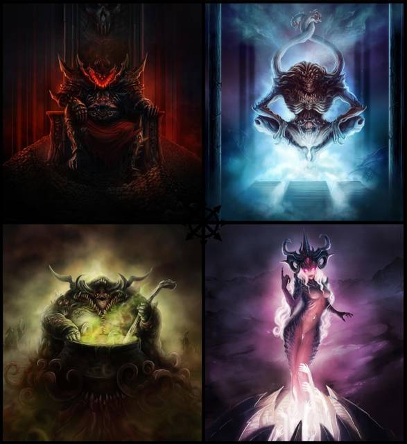 Вот они, с лева, на право: Кхорн, Тзинч, Нургл и Слаанеш.