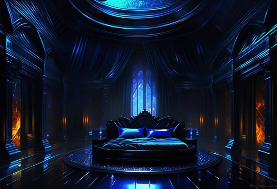 Активирую смену таверны, обстановка вокруг меня поменялась, теперь вместо какой-то жалкой каморки, это была по настоящему королевская спальня, увеличилось буквально всё, только одна кровать была 2 на 2 метра, обстановка вокруг меня стала даже волшебной, выполнено всё было в темно синих тонах.