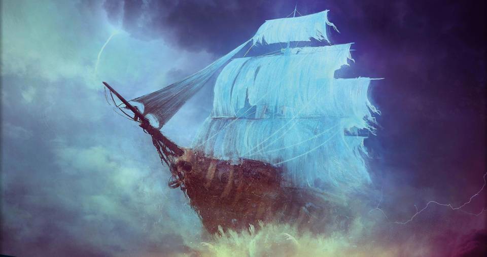 Вскоре, плывя на мертвых душах, из воды выпрыгнул гигантский призрачный корабль, на который старик и запрыгнул.