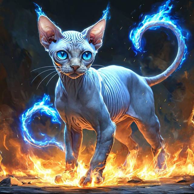 Та изменилась: голубые глаза стали ещё более яркими, и словно в них горело синее пламя. Вокруг кошки, которая сидела, зависли синие огоньки, как и кончики хвостов, теперь у неё слегка пылали.