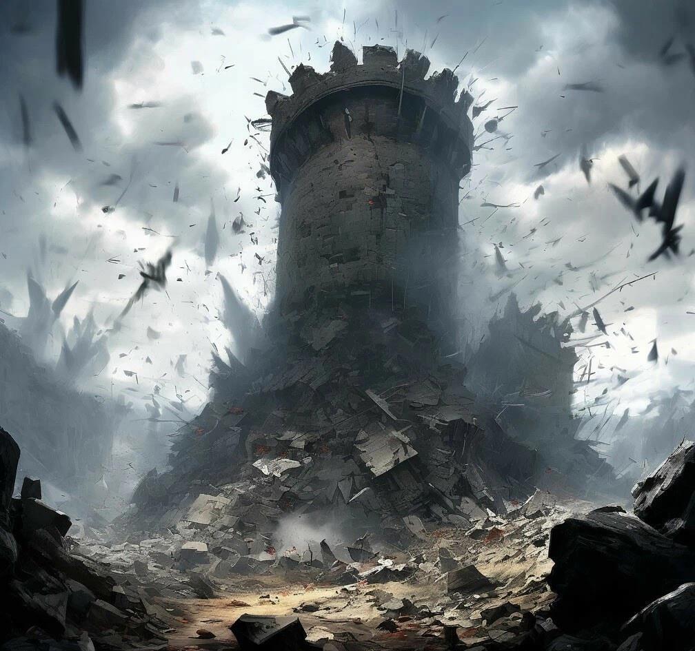 От башни осталась лишь груда обломков.