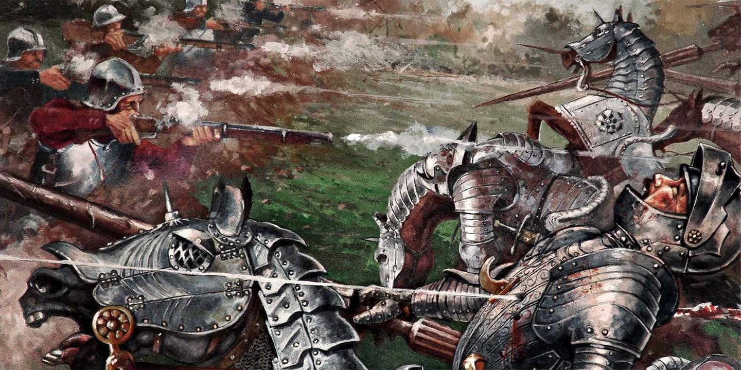 Пехота и лучники фанатиков все еще перестраивалась, когда они оказались под сосредоточенным ружейным огнем, пользуясь технологическим преимуществами. Перед каждым из них расцветало облачко дыма, пули сыпались на фанатиков, выбивая порой одной сразу двоих (если нет доспеха или он был слишком ветхим).