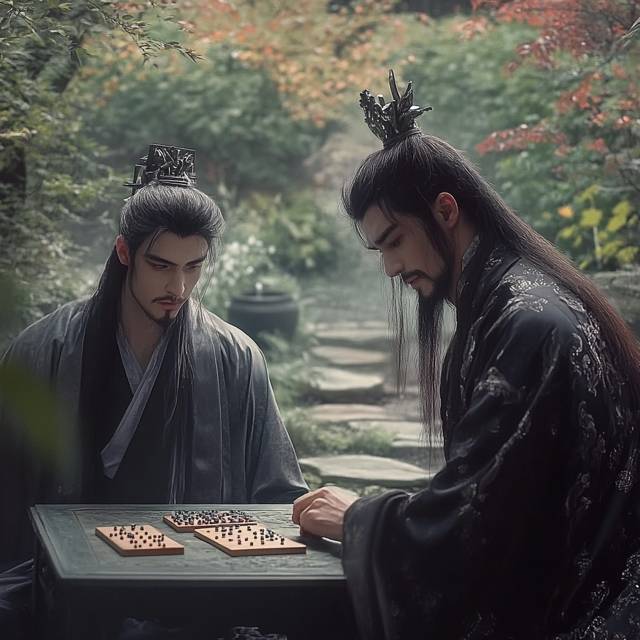 В одном из закоулков имперского сада стояла маленькая беседка. На столе стояла доска для игры в вэйцы, а рядом стоял чайничек на углях, и из его носика виднелся дым. За столом сидели двое мужчин средних лет с суровым лицом. Одним из них был Фу Лэй, дядя Фу Юмин. Второй же выглядел старше его и держался с большим достоинством.
