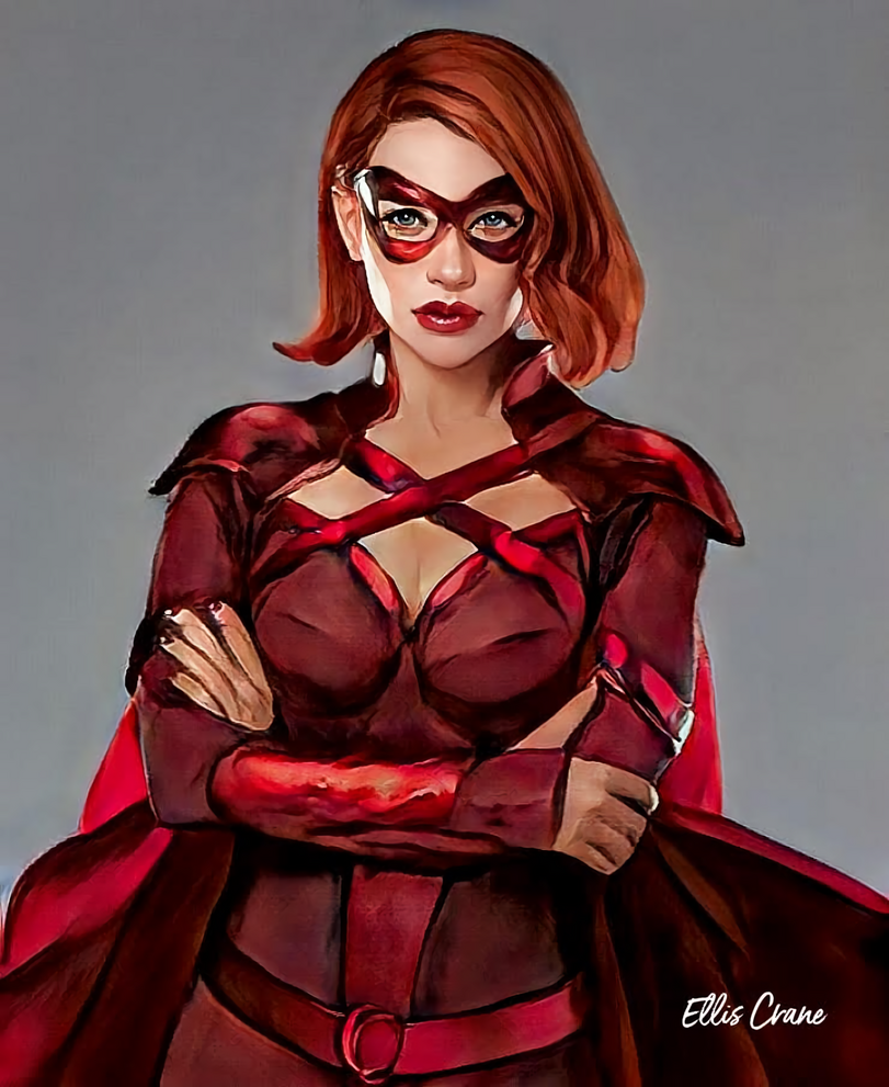 Однако её рука просто не могла подняться, чтобы совершить такое, так как девушке слишком нравилось то, как она выглядит. Закрытый алый костюм с плащом, красными штанами и маской домино, закрывал большую часть её тела. Однако оттого редкие открытые участки кожи только становились более заметными.