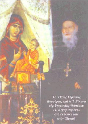 Преподобный старец Порфирий после долгой отшельнической жизни, чудесных аскетических подвигов и соответствующих плодов Святого Духа сделал свою душу «Троицкой горницей». С духовным поспешением он внимал указаниям и божественным знакам Святого Духа.