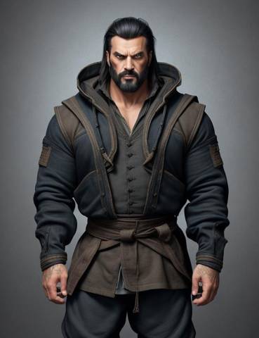 И тут главарь наконец остановился. Дистанция такая, что если я сейчас захочу достать его глефой, то мне придется сделать еще один шаг. А он довольно крепкий и мускулистый. Намного больше меня. Наверно голой силищи у него немерено. После чего он тут же начал диалог.