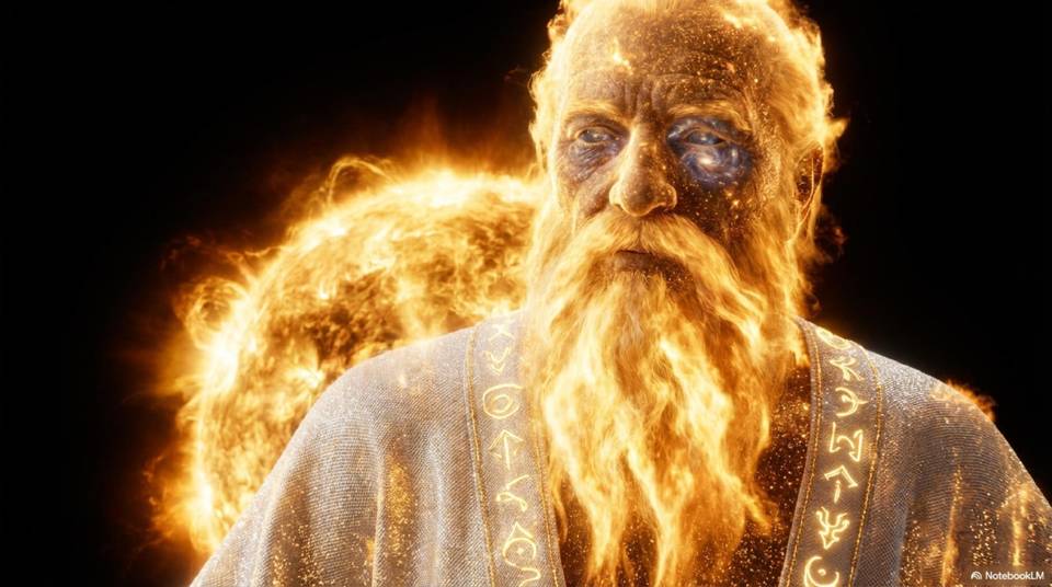 И будто в ответ ему бесконечный мрак космоса сгустился, дробясь, клубясь и формируя новую фигуру, после чего два существа застыли друг напротив друга. Такие похожие в своей невероятной силе и такие разные. С одной стороны старик, сотканный из света звезды, чей лик воплощал собой всю мудрость и все спокойствие, что только можно было представить на Земле, одетый в простую робу, вышитую золотом и символами, которые были древнее, чем само человечество.