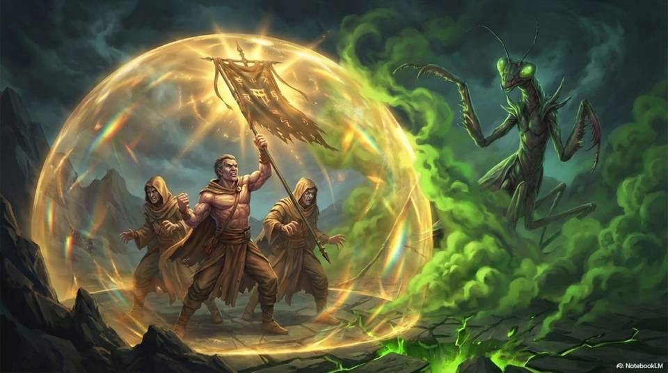И пускай сам Увонд, находящийся не в сфере мира, а через еще один портал, и был в безопасности, но вот его учеников стоило защитить от подобного. И старик, открыв кольцо, извлек оттуда еще один флаг, а один из окружавших его богомолов, подхватил тот, перенося через портал и отдавая Ангару, что и применил артефакт, создавая вокруг тройки учеников защитный купол.