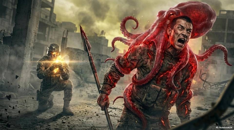 (Ко мне, будь готов атаковать) – Успел я отдать приказ духу, перебивая его поток эмоций, похожих, наверное, на опьянение от поглощения огромных объемов энергии. И кракен неохотно начал катиться в нашу сторону. А военный тем временем обернулся ко мне, чуть вскинув автомат. И тут-то я подумал что все, конец. Вернее только начало страшной бойни, но вояка повел себя на удивление разумно.