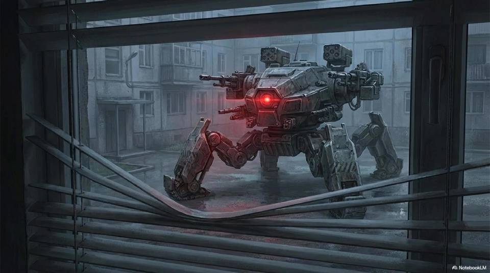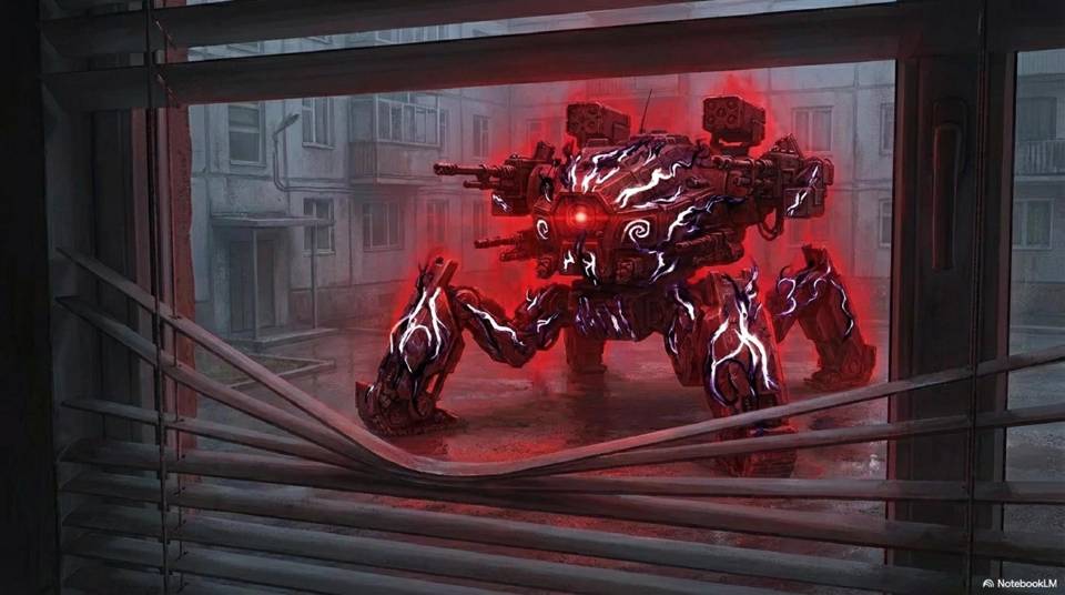 И сейчас в центре дворика, где мы и бросили «наш» автомобиль, стояла эта боевая машина. Гусеничный ход на четырех «ногах», что повышало мобильность, встроенный пулемет, когорта дронов, старая добрая система РЭБ и встроенный лазер. Не слишком мощный, но поджарить дрона в полете или заслепить область в небе вполне сможет. И главное, кречеты управлялись встроенным Искином уже запрещенной мощности. Если и послабее Нелл, все же им не нужно было уметь создавать сериалы или что-то подобное. Но по слухам, сознание там было ого-го.