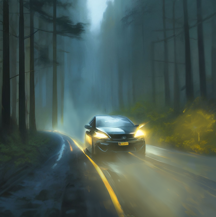 Чёрная машина не спеша ехала по тёмному пустынному шоссе, освещая серый асфальт золотистым светом фар.