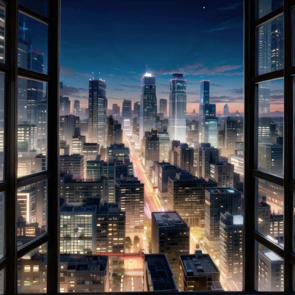 Сквозь большое окно номера отеля класса люкс был виден шикарный пейзаж ночного города.