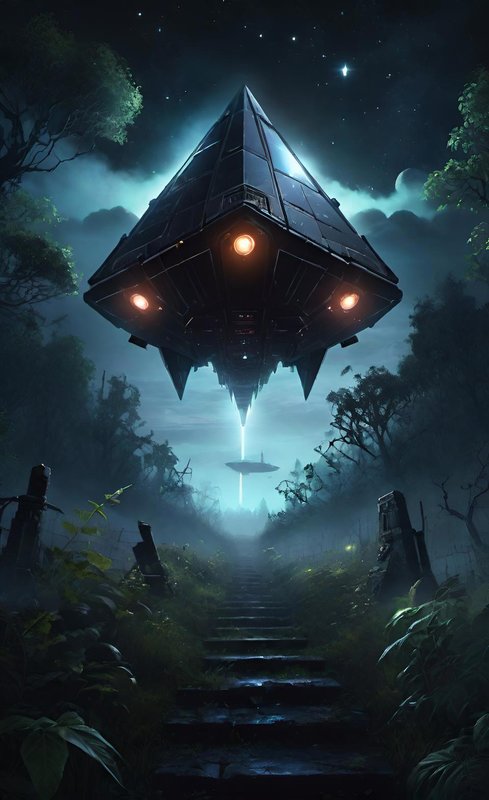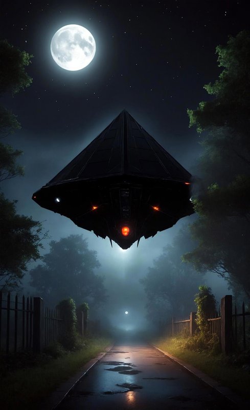 Ошарашенный Алексей повернулся к Вике, но застыл с открытым ртом. Над головой, на фоне чёрных туч, проплывал огромный треугольник.