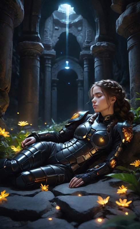 Обессиленная девушка повалилась на каменный пол. Парень порылся в вещах и достал ватную телогрейку. Постелив её возле отдыхающей, он перекатил недовольную красавицу на мягкую подстилку.