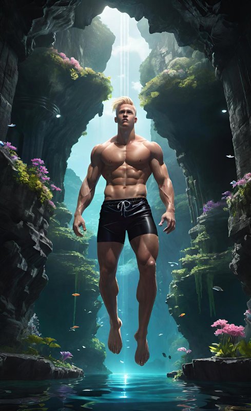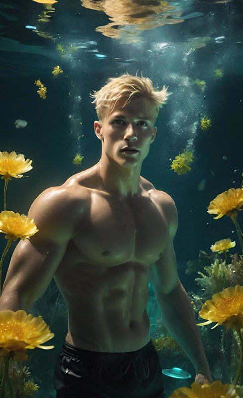 Внизу, на застывших волнах, умиротворённо покоилось мускулистое тело. Красивое лицо парня с закрытыми глазами приподнято над водой. Оно кажется знакомым. Стоп! Как так? Это же…