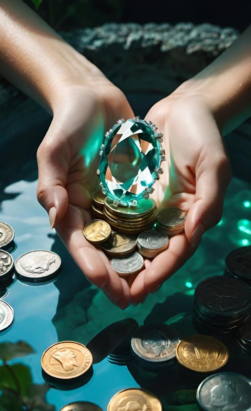 Девушка отпустила его и погрузилась на дно. Но из-за поднявшейся вокруг сундука мути ничего толком рассмотреть не могла. И всё же, очень скоро в её небольшом кулачке оказалась горсть монет и пара безделушек. Глубина не позволяла ей стоять на дне, и она забралась на опрокинутый сундук. Красавица с неописуемым восторгом рассматривала ценную добычу.