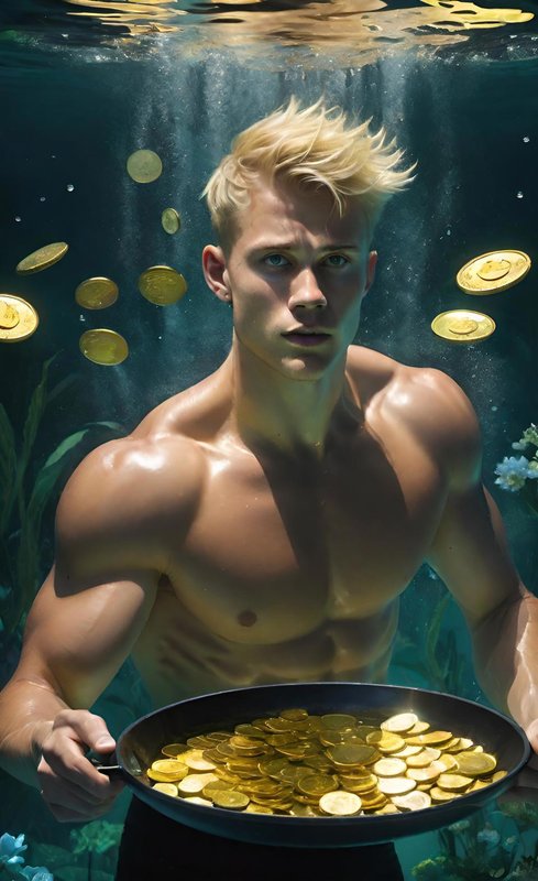 Алексей доплыл до лежащей на бортике опустевшей сковородки. Всё равно её мыть придётся. Затем вернулся к сокровищам, стараясь не сильно пялиться на колышущуюся над водой восхитительную грудь. Погрузившись на глубину, он принялся нагребать в кухонную утварь валявшиеся на дне предметы.