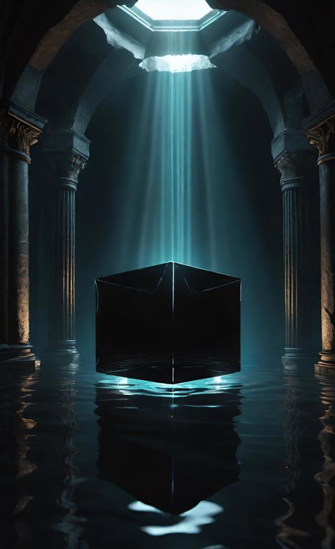 Прозрачная гладь озарялась светом необычных водорослей. Они плотным ковром оплели дно и стенки бассейна. Вода оказалась на удивление теплой и очень приятной на ощупь. Слабое течение шло от темного объекта похожего на чёрное угловатое пятно, возвышавшегося над краем водоёма. Скользя по серебристой поверхности поток уходил в тонкие отверстия, скрытые растениями где-то на дне.