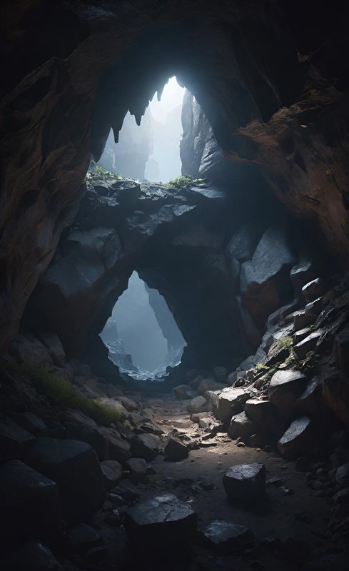 Отпинывая каменные детали, парень тащил за собой тележку с вещами. Он походил на торговца, завоёвывающего новые рынки сбыта. Путники вышли из неровного пролома в просторный зал.