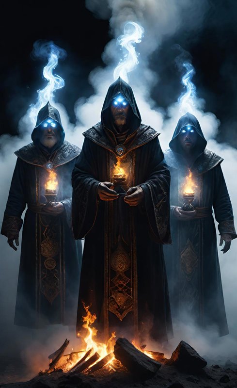 В попытке отвлечься парень немного отвернул взгляд. Скользнул вдаль… Гревшиеся у магического костра колдуны были окутаны сгустками грязных облачков, образовавших тяжёлые вуали. Считывать что-то было бы отвратительно и трудно. А вот черноволосая жрица имела меньше защиты. Её окутывала странная аура не сопоставимая ни с чем, виденным ранее.