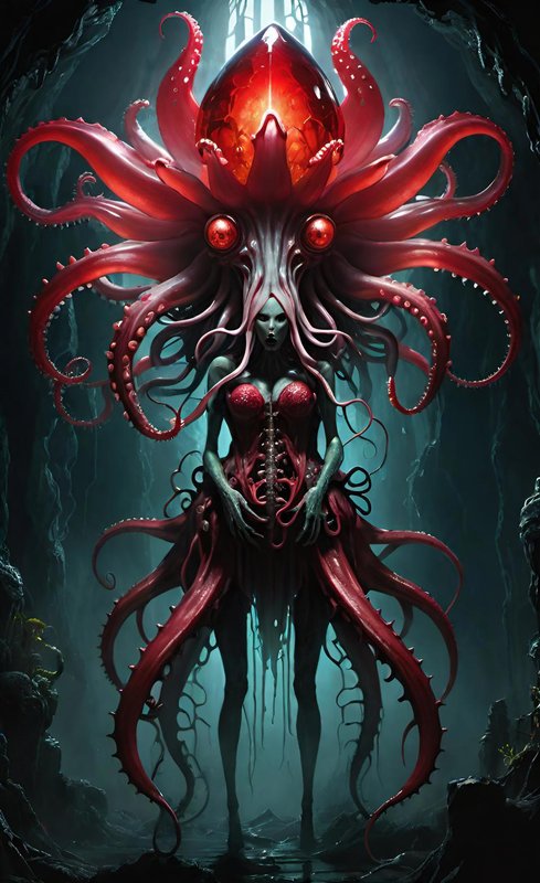 Взглянув на привлекательную особу внимательно, Алексей мысленно присвистнул. Антропоморфная фигура с похожей на цветочный бутон головой. По сути, это была трёхлепестковая пасть, способная заглатывать большие предметы. В разные стороны торчали длинные щупальца, как у гигантского кальмара. По телу сползала ядовитая слизь. Даже у искушенных в извращениях японцев от такого бы пропал аппетит.