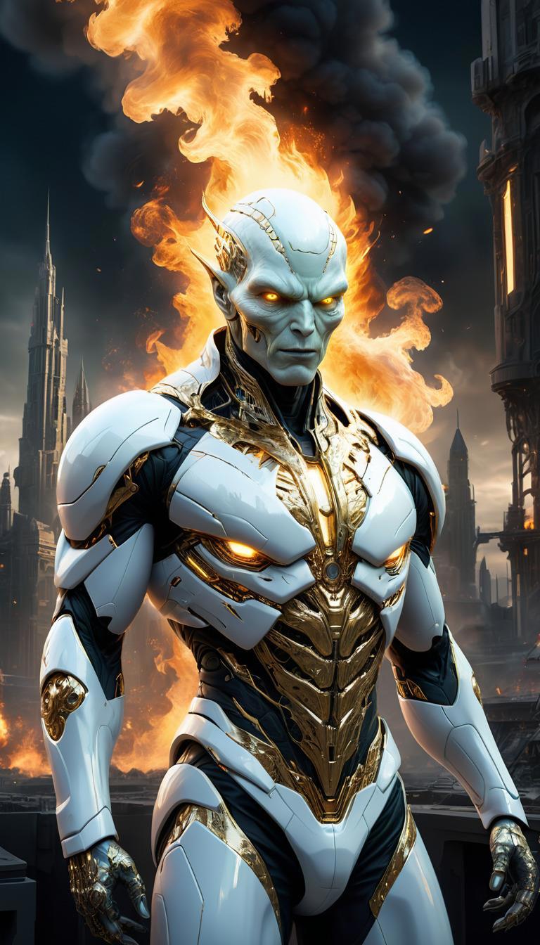 Неор Синт был уродливым белым человекоподобным монстром, с гладкой чешуйчатой кожей, как впрочем и все обитатели мира Нормадду, ибо он был драконом, и все жители его мира были такие же, как он сам, и назывались они дроллами.